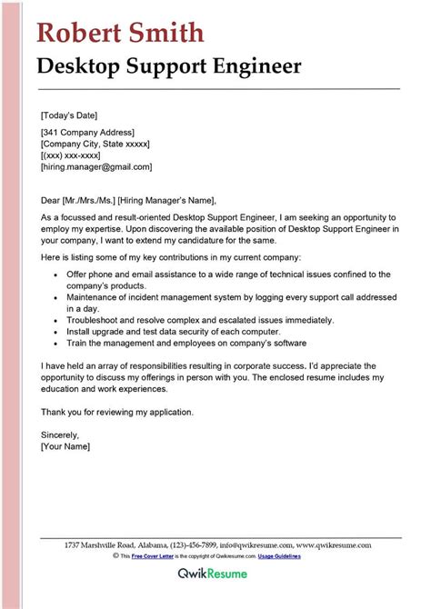 Desktop Support Cover Letter Sample - Key takeaways for a desktop support cover letter. We'll provide cover letter examples tailored to different desktop support roles and experience levels, offer detailed formatting advice, and. The best cover letter example we could find for the desktop support role. 14 desktop support engineer cover letters. Including a writing template that you can use for.